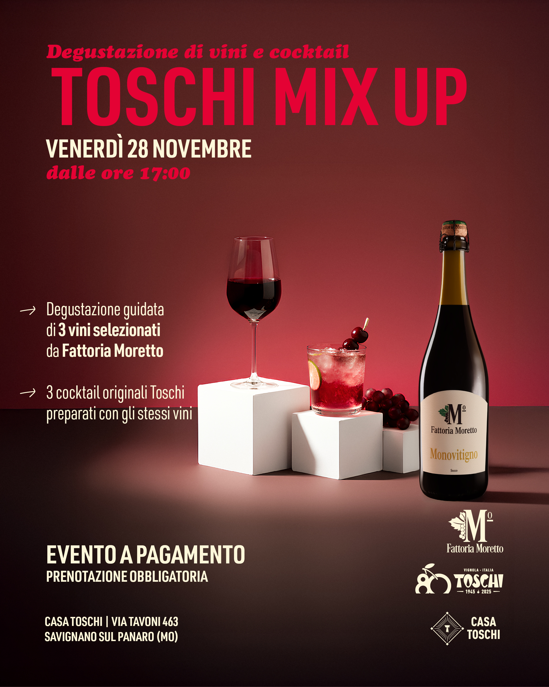 🍷 TOSCHI MIX UP – Evento di degustazione di vini e cocktail con Fattoria Moretto 🍷